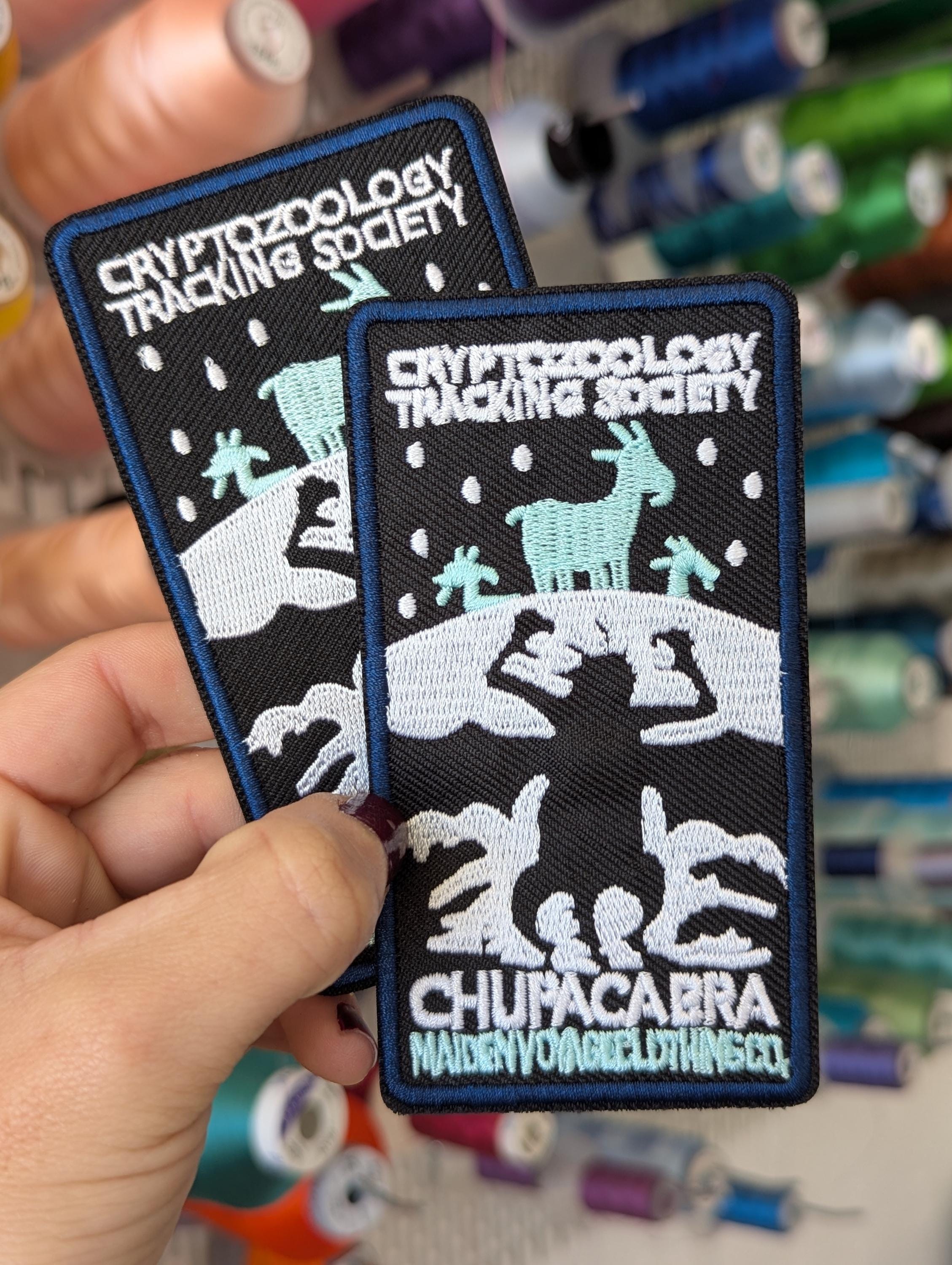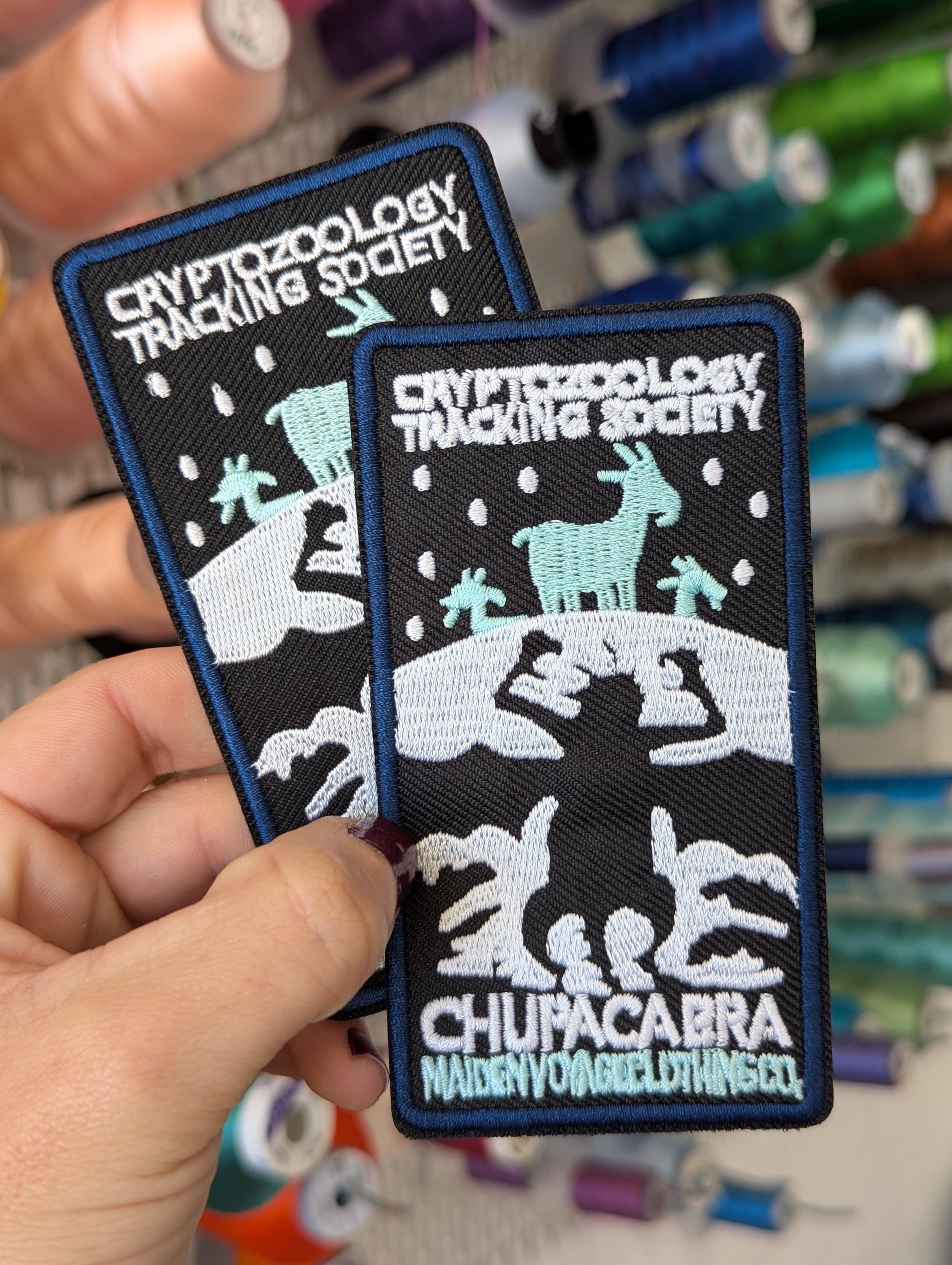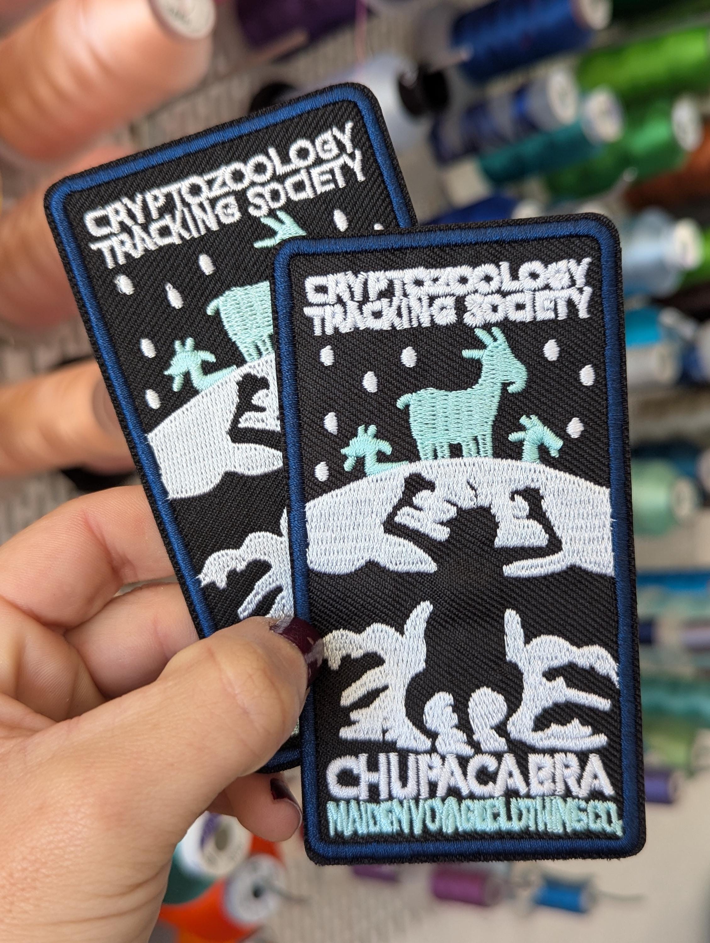 Fully embroidered Chupacabras patch.Original design.For sewing or ironing.Size: 11cm.Price per unit.100% high-strength ecological polyester.With thermo adhesive or to sew.
