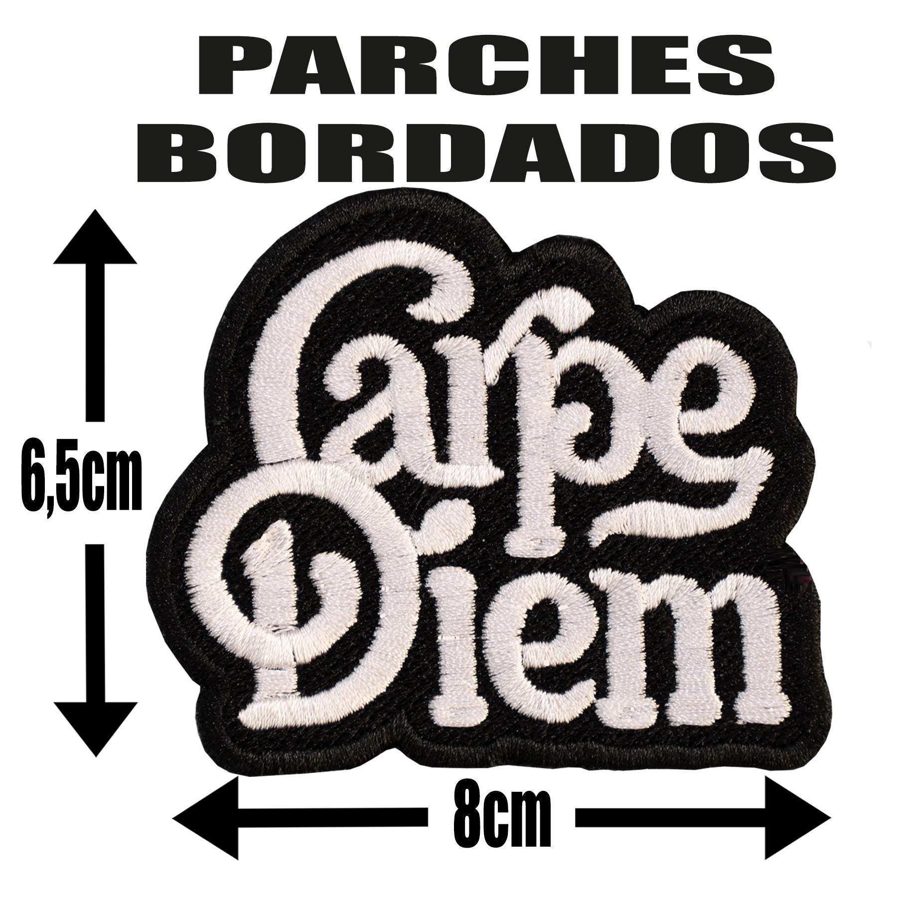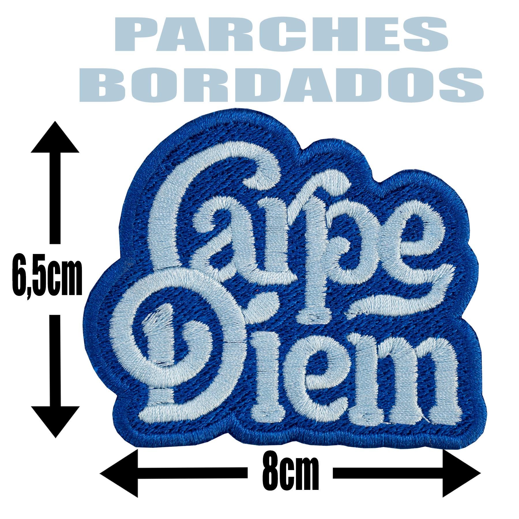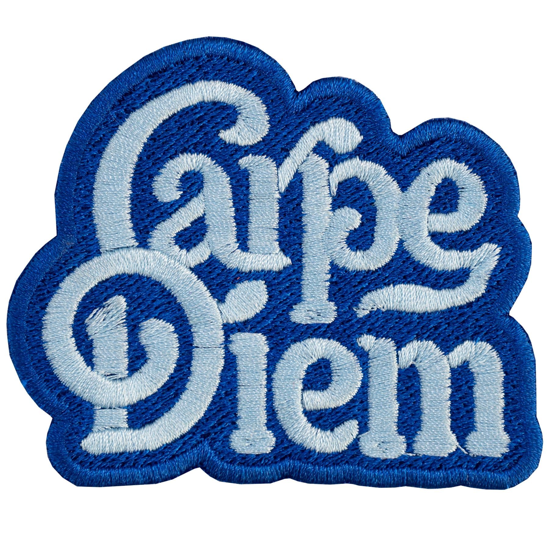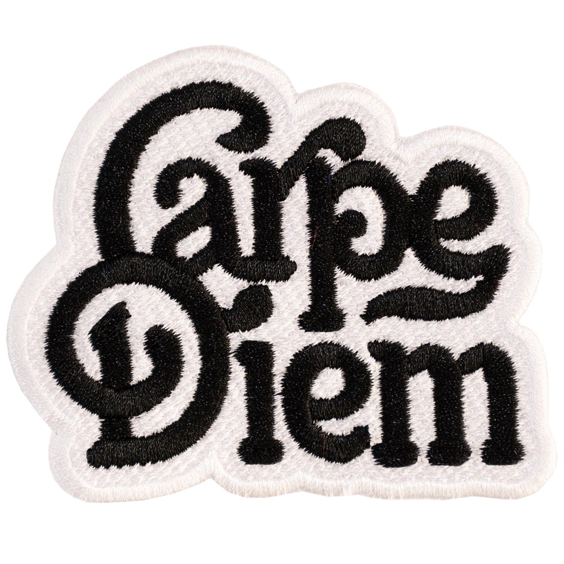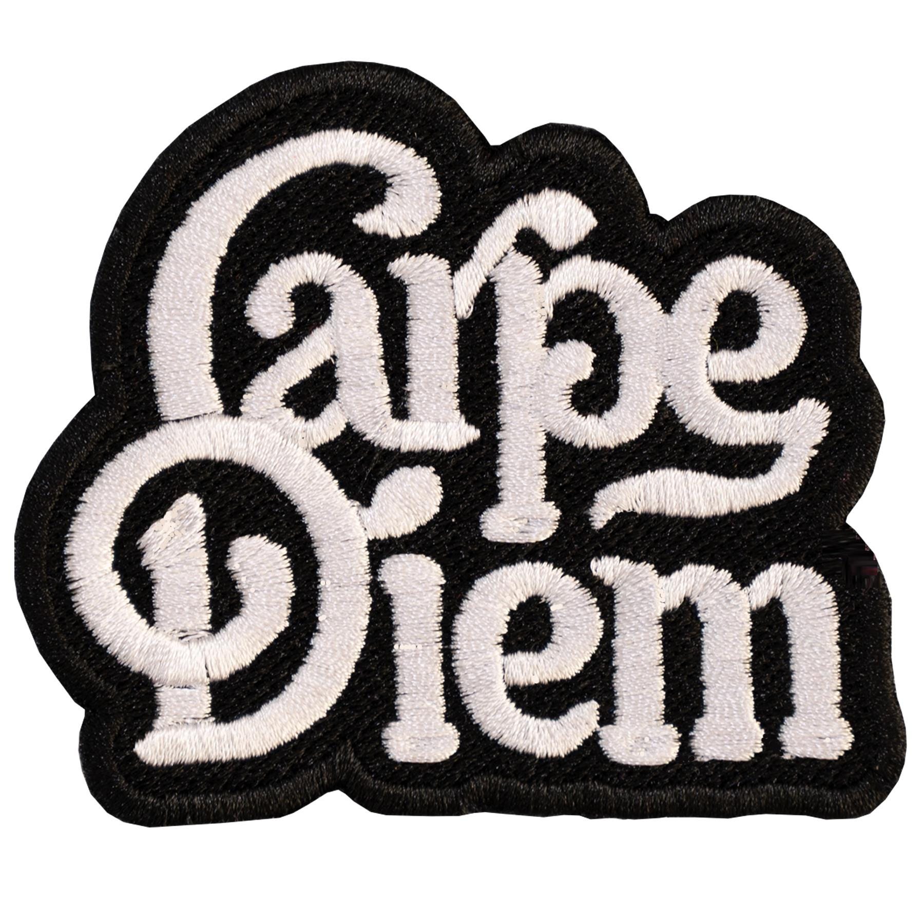 Fully embroidered "Carpe diem" patch.