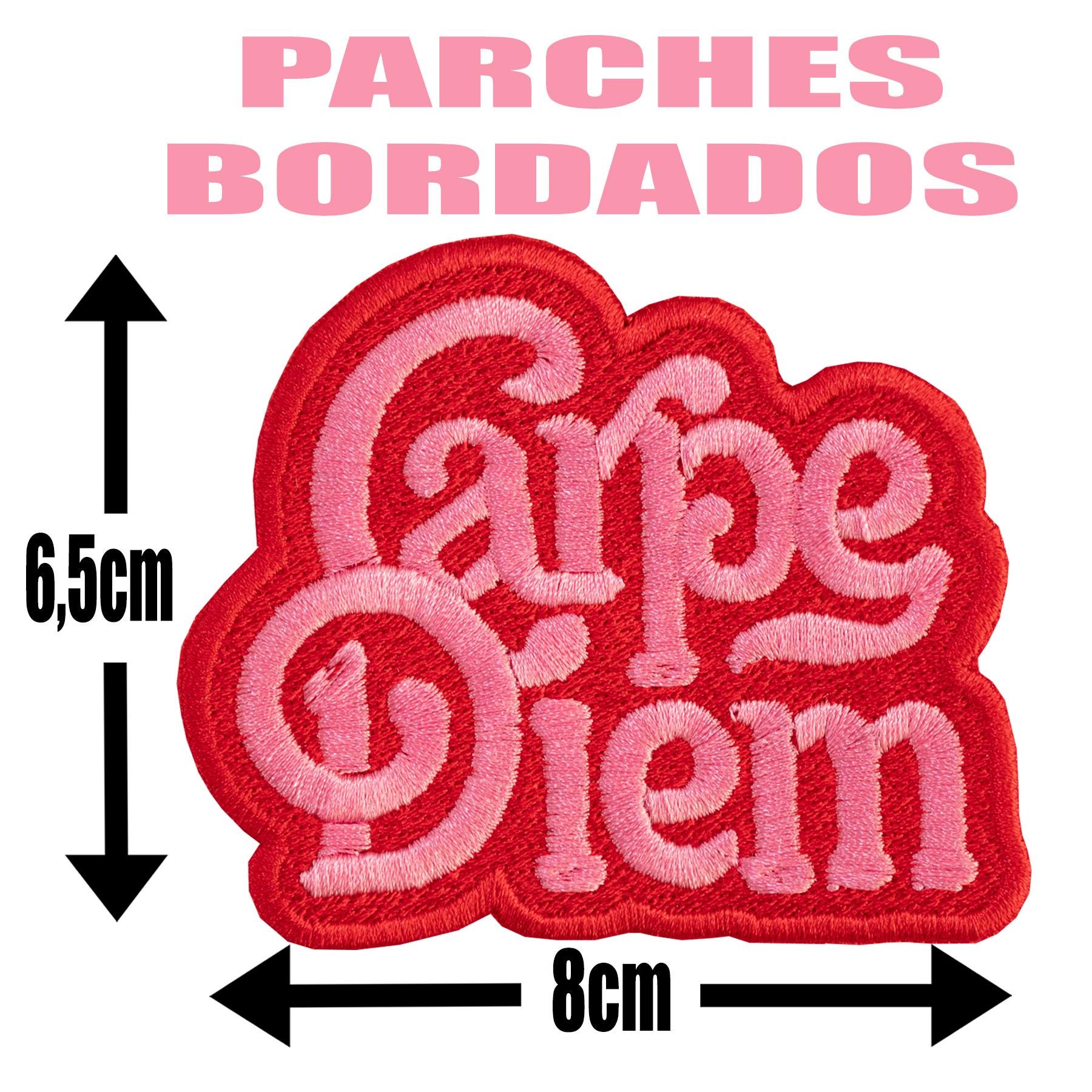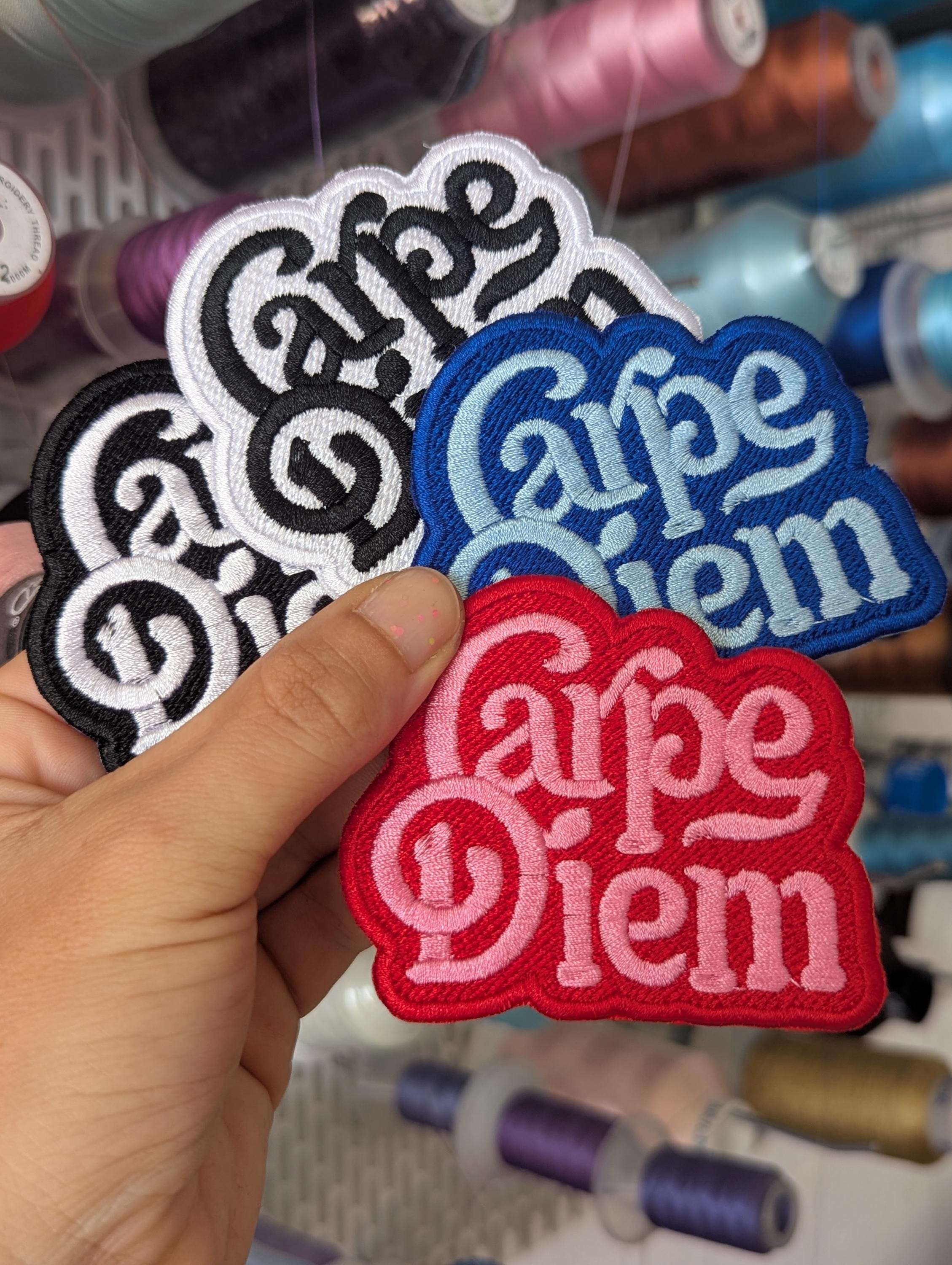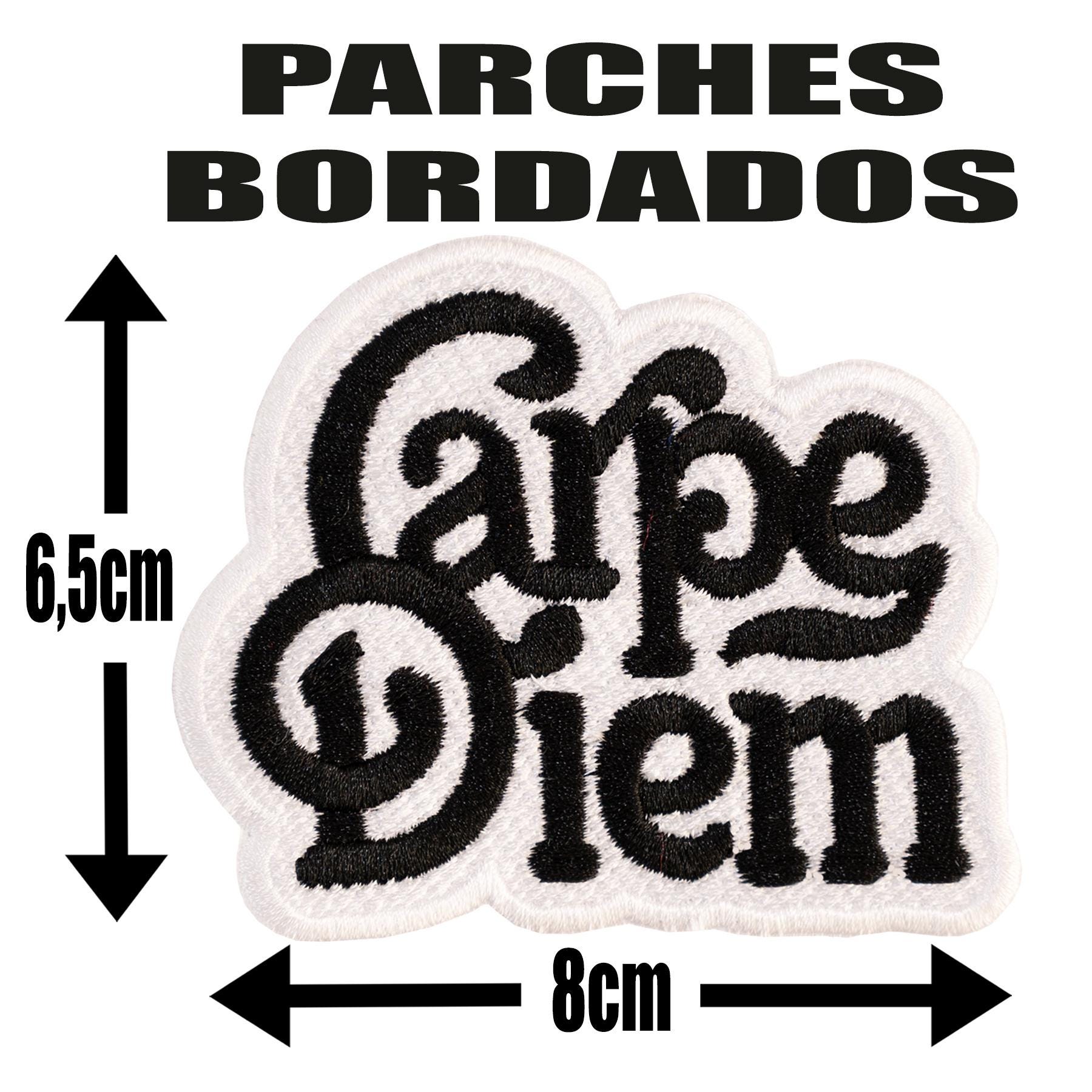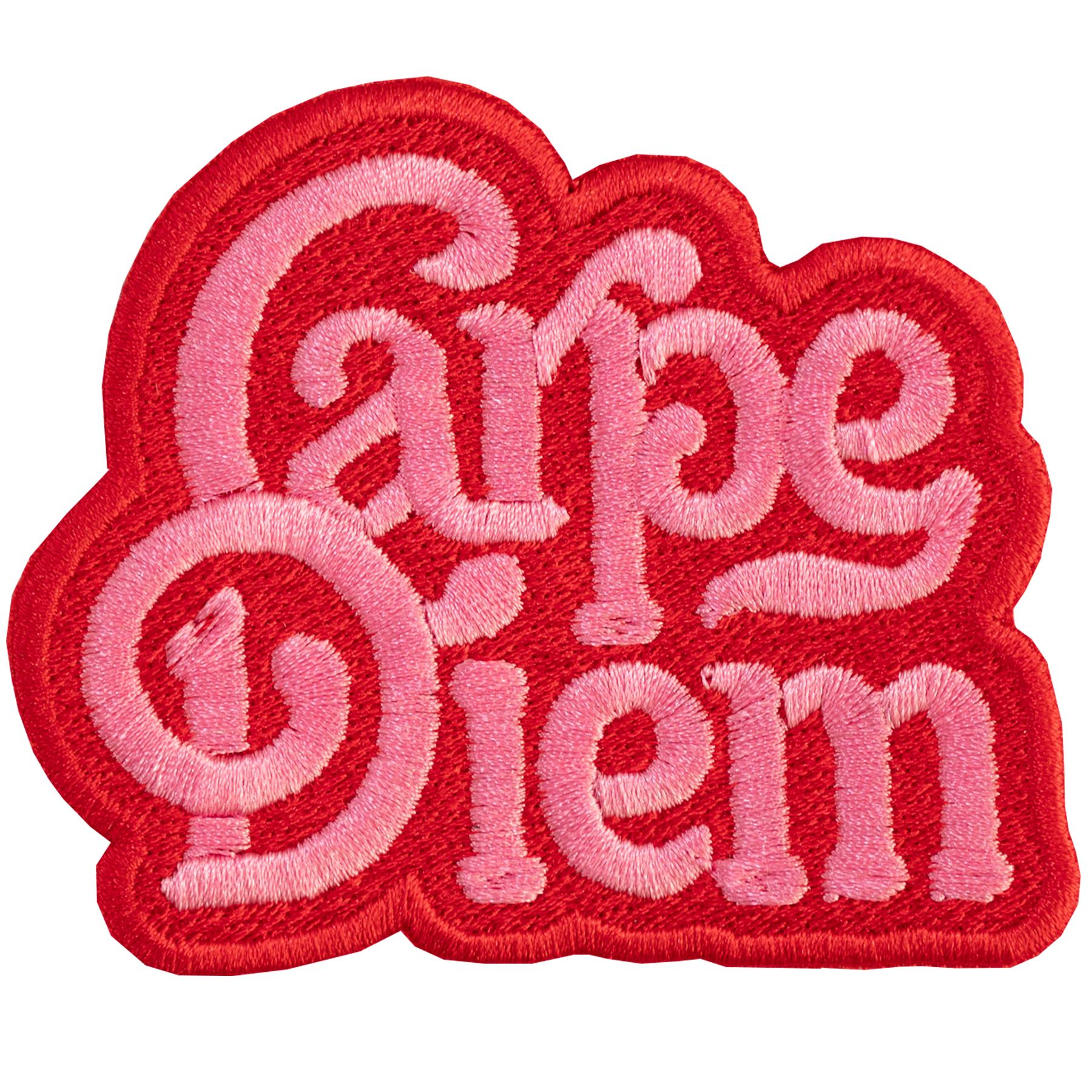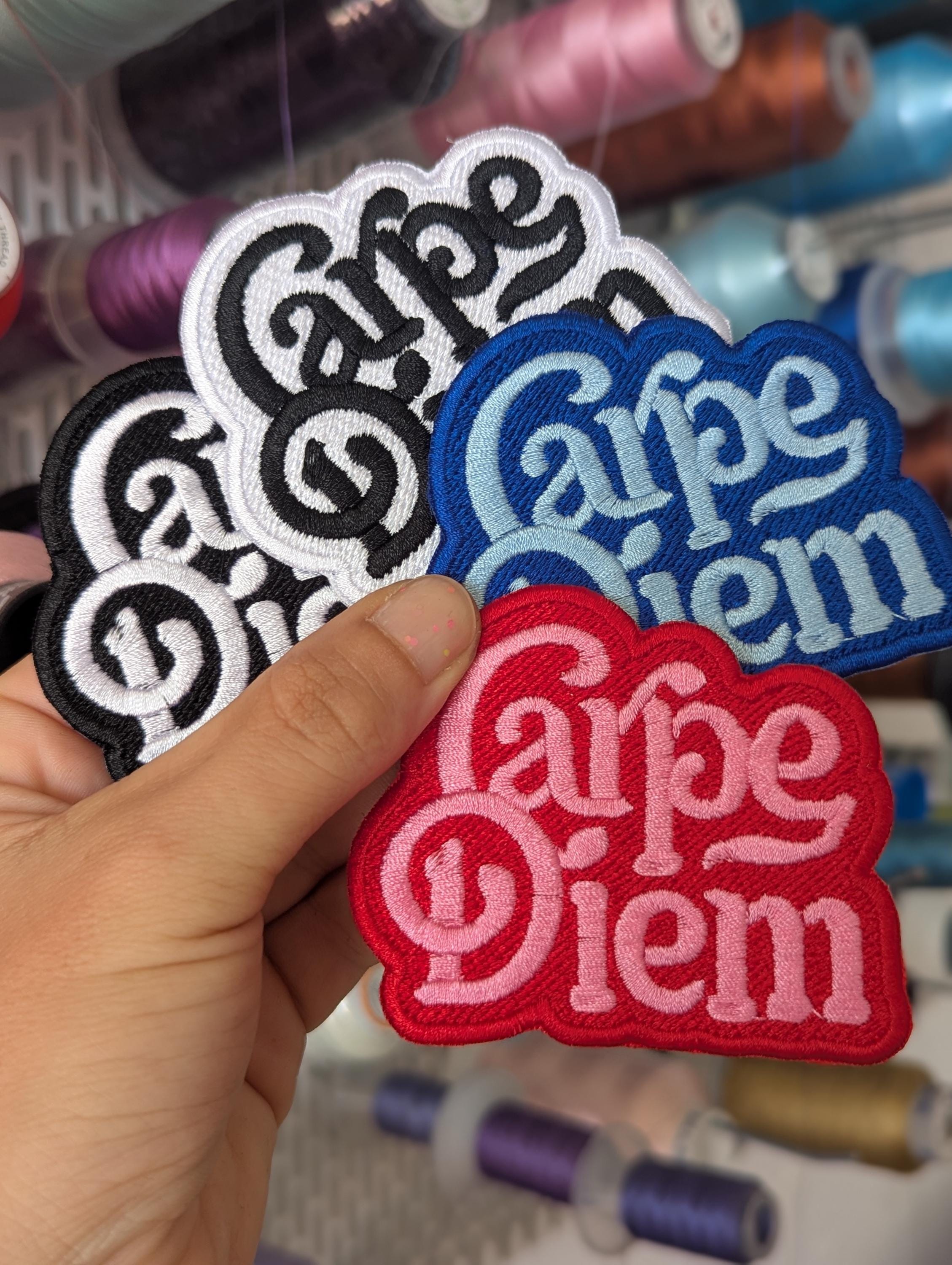Fully embroidered "Carpe diem" patch.