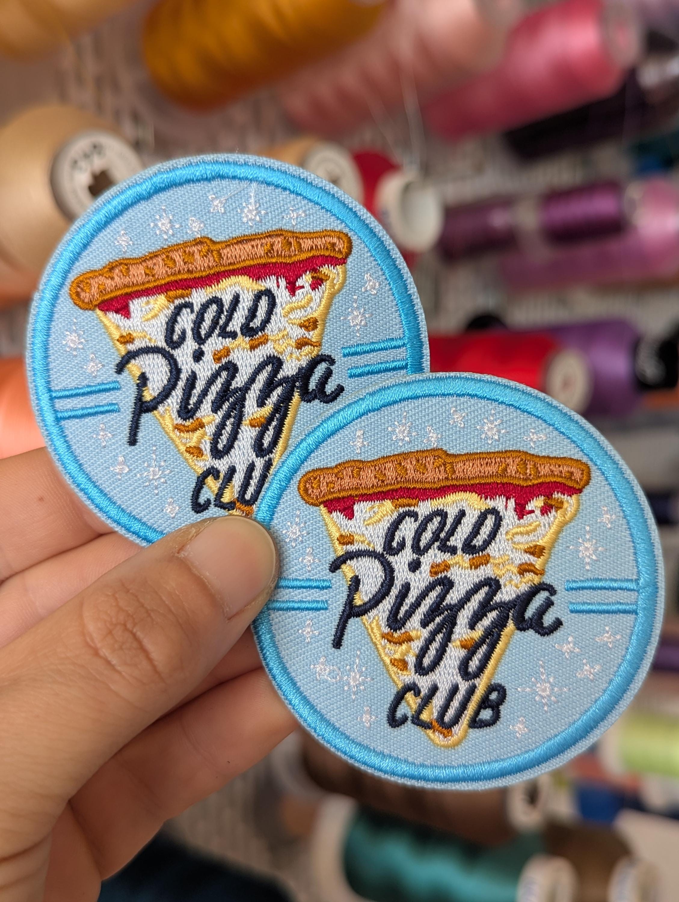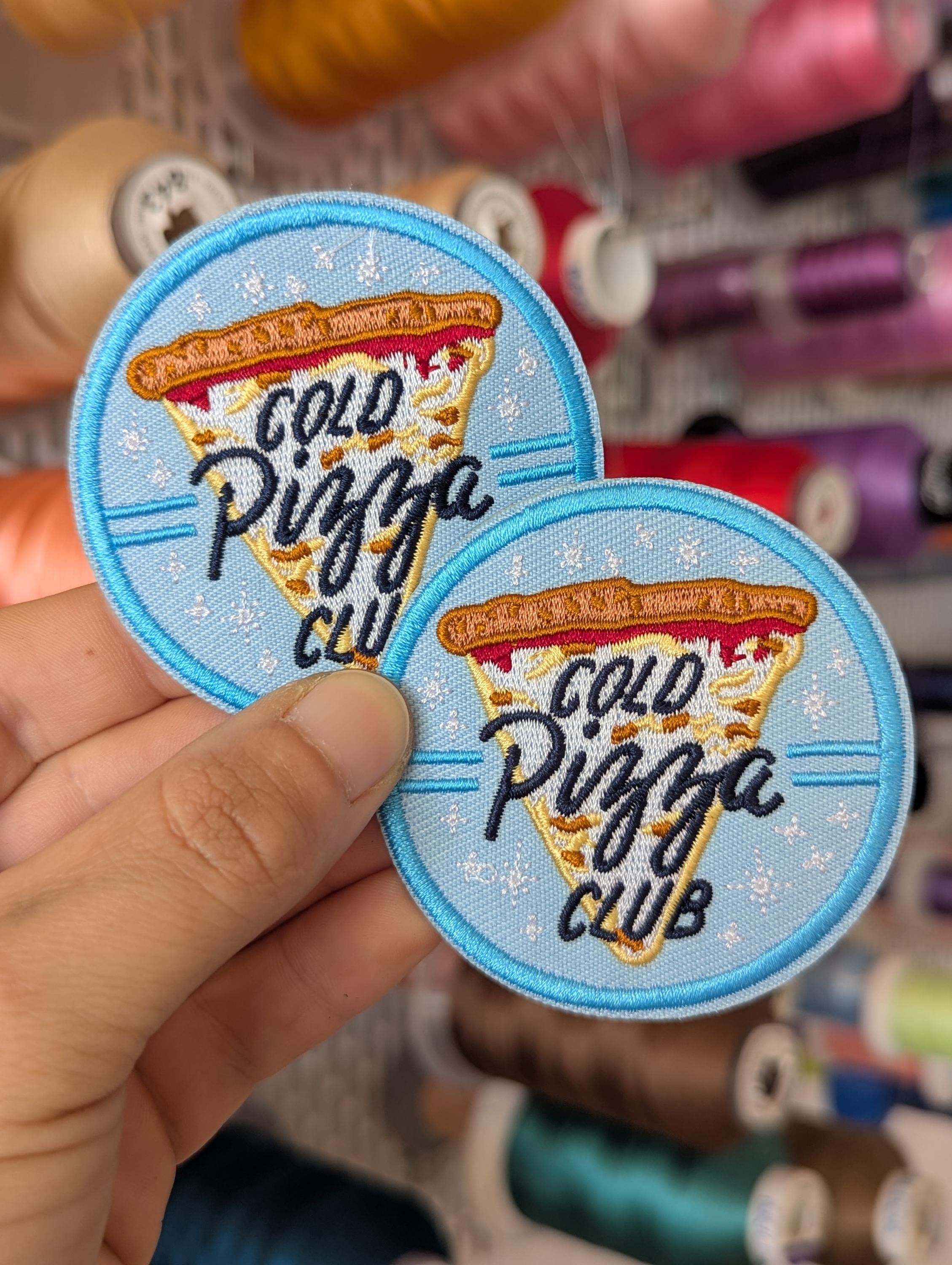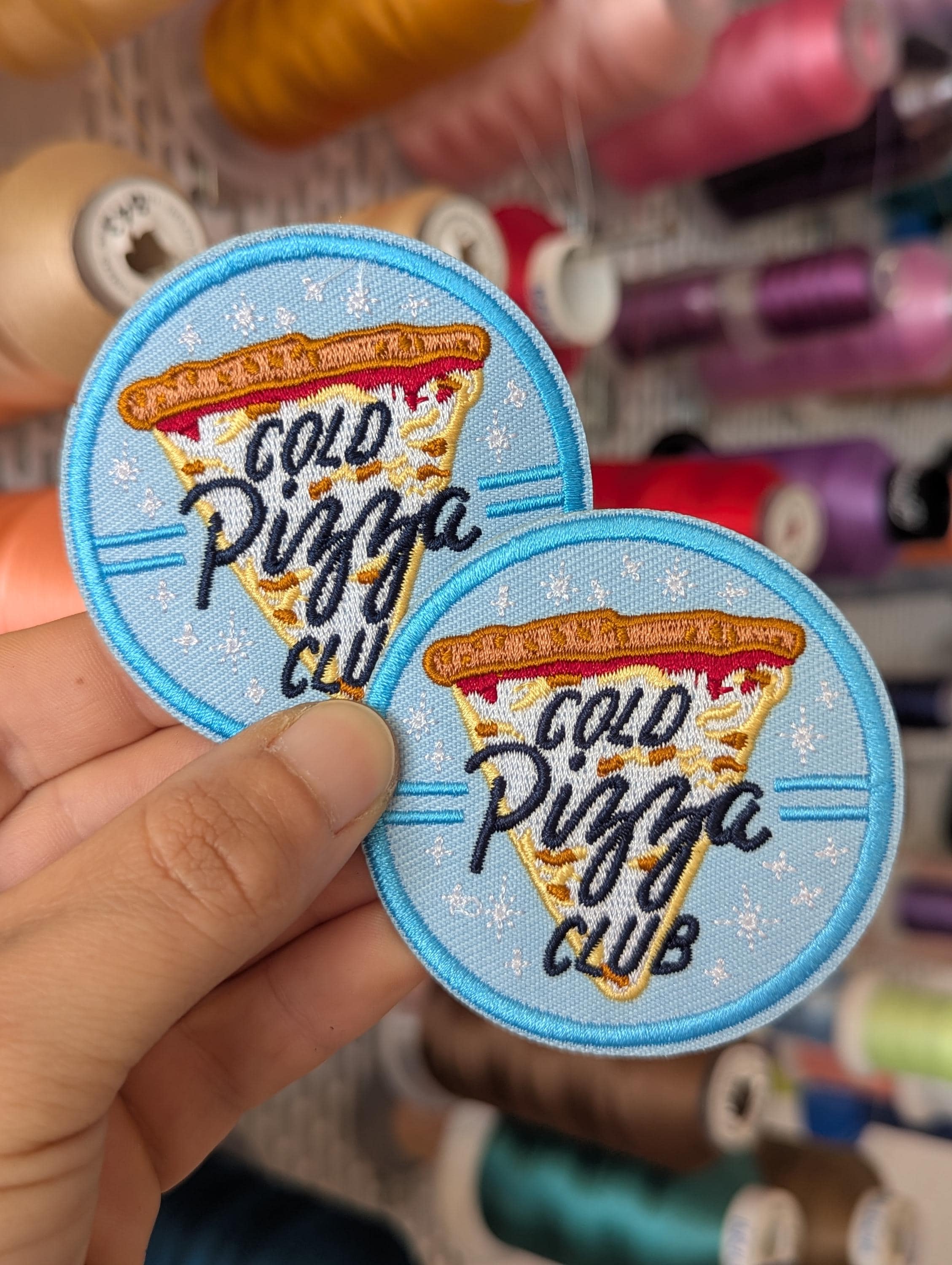 "Cold Pizza Club" embroidered patch.For sewing or ironing.Size: 6'5cm.Price per unit.If you want a custom design, write to me ☺️ 👌100% high-strength ecological polyester.With thermo adhesive or to sew.